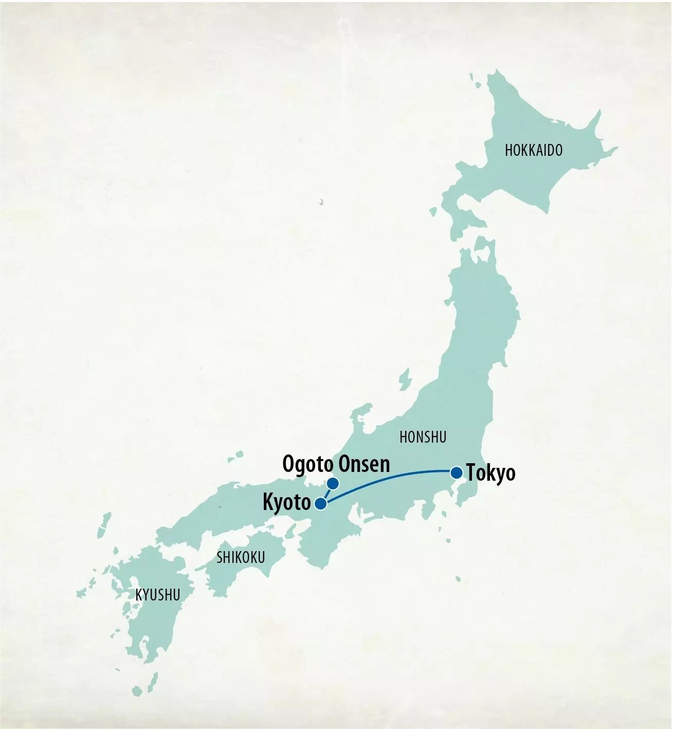 Tokyo, Ogoto Onsen, Kyoto, Nara